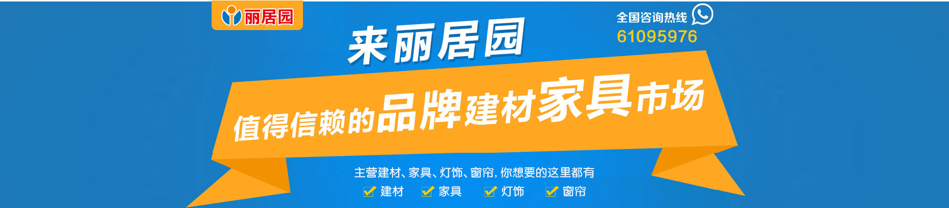 麗居園屬中高檔建材裝潢綜合大型家居商場(chǎng),營(yíng)業(yè)面積3萬(wàn)平方米,停車(chē)泊位2百個(gè)。商場(chǎng)內(nèi)配置自動(dòng)扶梯、直升梯、中央空調(diào)、背景音樂(lè)、通道網(wǎng)絡(luò)、智能監(jiān)控,設(shè)施完善,裝潢精細(xì),格調(diào)高雅,布局合理,是百姓居家裝潢的理想購(gòu)物場(chǎng)所。商場(chǎng)定位中高檔,引進(jìn)國(guó)內(nèi)外知名品牌,傾心打造各種建材品牌的聚集中心,為消費(fèi)者提供中高端品質(zhì)的建材裝潢一條龍購(gòu)物環(huán)境。